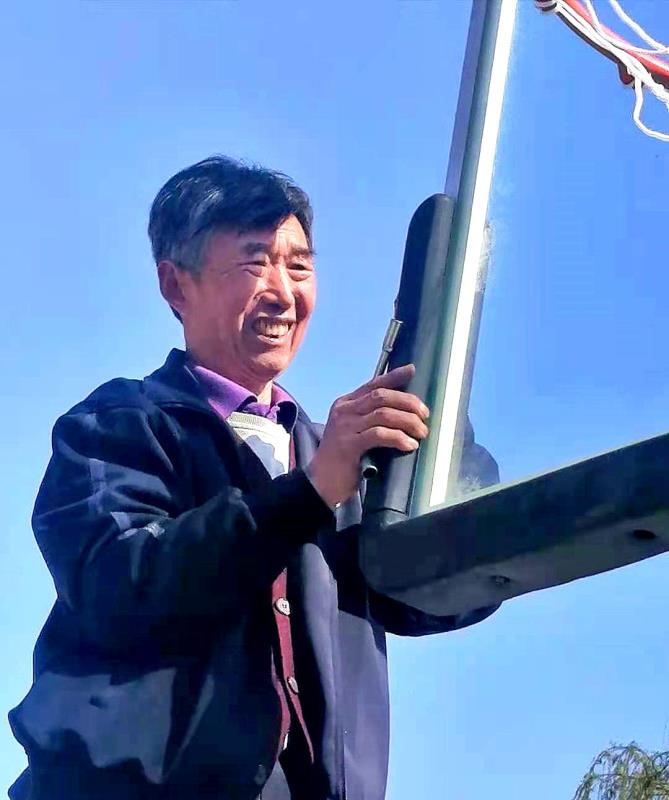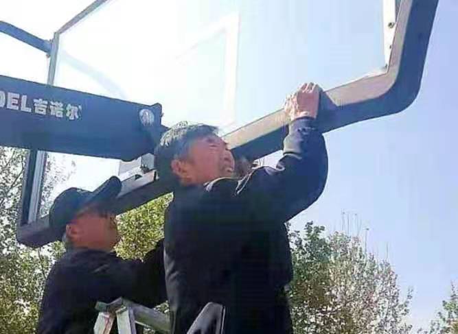 夏县莲湖公园东南角上的篮球场,每天早晚都是篮球爱好者的好去处。一个多月前,靠北一个篮球架上的螺丝损坏,栏板破裂,悬吊在空中。一群爱好者只能天天"单挑"。时常在公园里锻炼的夏县原玻璃厂退休老干部、共产党员邢七珠,同厂退休职工魏天宝看在眼里,急在心里。这天,他俩商量后,邢七珠老人自掏2o多元,买囬了螺丝配件等,魏天宝也主动买回了门框网。他们拿着工具,背着人字铁梯赶到莲湖公园修理篮球架时,另外几个人见状怕他们年事已高,在空中作业不安全,也主动围上来扶梯替物帮忙。经过近一个小时的忙碌,篮球架终于修好了,两位老人这才擦去脸上的汗水。