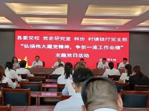 (本网讯 景继光 通讯员 婷婷)为深入学习贯彻习近平总书记“七一”重要讲话精神,进一步弘扬伟大的建党精神,更好地传承红色基因、赓续精神血脉,9月6日下午,夏县县委党史研究室创新形式、丰富内容,联合夏县县委党校、夏县科学技术协会、夏县河东村镇银行共同举办“弘扬伟大建党精神,争创一流工作业绩”的主题党日活动,40余党员干部参加此次活动。会议由夏县县委党校常务副校长邢建中主持,他同时传达了县纪委《关于十九大以来80后干部违纪违法的通报》精神。