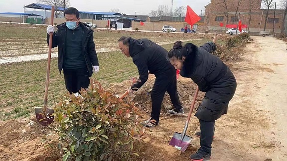 (本网讯 景继光 通讯员:王瑞泽) 阳和启蛰,品物皆春。2月7日,正月初七,农历虎年第一个工作日,禹王镇按照县委、县政府统一部署,在李庄村配合全县县直干部义务植树活动,并开展镇机关义务植树活动。 植树现场,所有机关干部拿起铁锹,三五人成组,严格按照移树入坑、扶树对齐、填土入坑、平整树畦、围堰浇水等步骤,默契配合,尽是大家热火朝天的劳动景象。经过2小时劳动,共栽植栾树、红叶石楠共计200余株,为道路两旁增添道道新绿。
