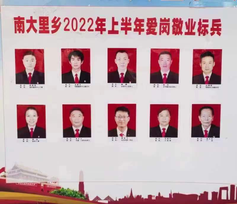 (本网讯 景继光 通讯员 张秀峰)为深入推进抓党建促基层治理能力提升专项行动,充分提升基层治理能力和水平,发挥榜样的示范激励作用,彰显机关良好地精神风貌,南大里乡制定出台了《南大里乡机关干部积分量化管理办法(试行)》。7月11日,南大里乡组织开展了2022年上半年度“爱岗敬业树标兵,岗位建功新时代”评选活动,对10名“爱岗敬业标兵”进行了大张旗鼓的宣传表彰。