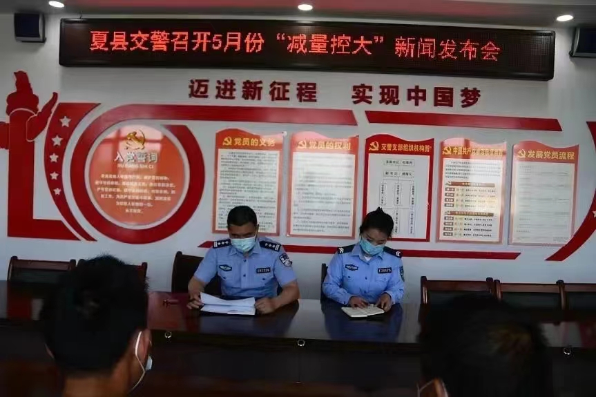 (本网讯:景继光 通讯员:李官海)为进一步加大交通安全宣传覆盖率和影响力,积极营造浓厚的宣传氛围,5月26日,夏县公安局交通管理大队在大队三楼会议室召开5月份事故预防“减量控大”新闻发布会。