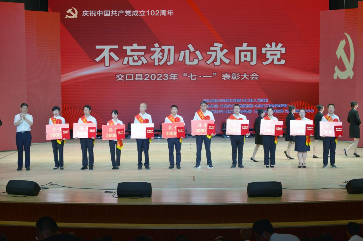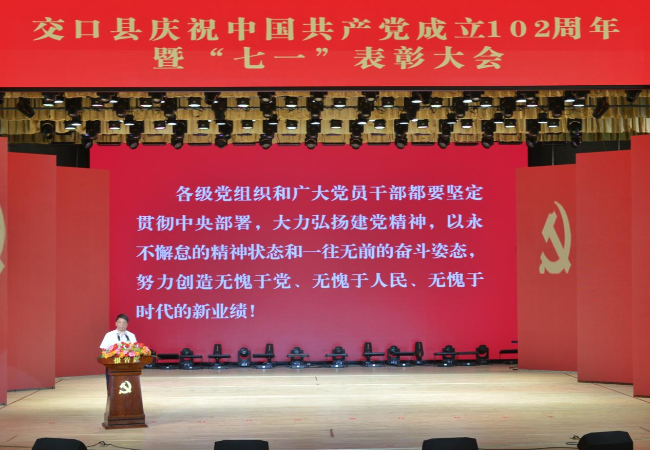 (本网讯:冯德华 通讯员:卫海平 解德智)6月28日,交口县举行庆祝中国共产党成立102周年暨“七一”表彰大会,对全县各条战线的基层党组织和优秀党务工作者等进行表彰和奖励,旨在激励全县各级党组织和广大共产党员不忘初心、铁心向党,团结奋进、勇毅前行。县委书记刘惠民出席大会并讲话。