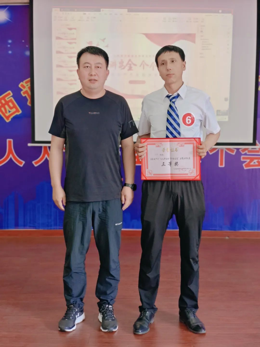 五人小组组长刘帅为三等奖选手杜勇颁奖