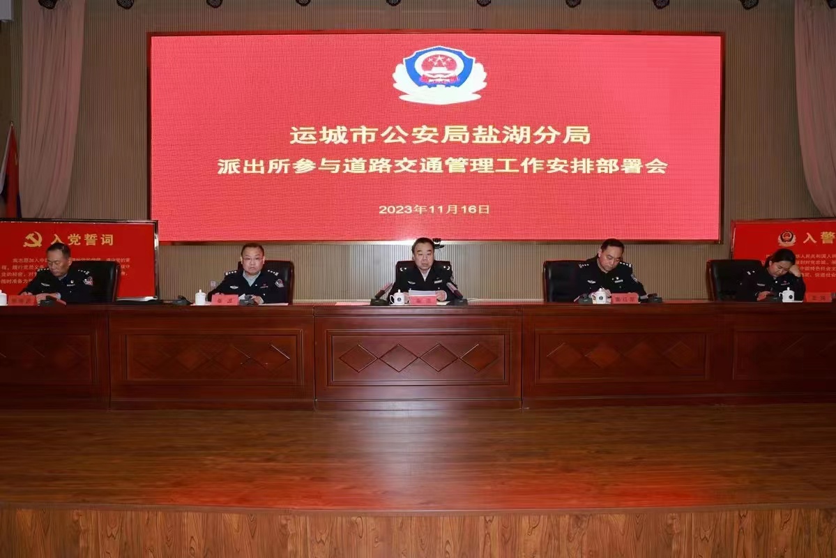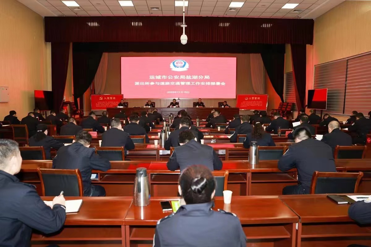 (本网讯:景继光)为深入贯彻落实运城市农村道路交通安全基层治理暨农村派出所参与道路交通安全管理工作(新绛)现场会会议精神,切实提升基层治理能力水平,更好服务盐湖区社会经济发展,11月16日,盐湖公安分局召开派出所参与道路交通安全管理工作部署会。会议由党委委员、副局长崔波主持,副区长、分局党委书记、局长秦浩参加会议并作讲话。各科室所队负责人等共计90余人参加会议。