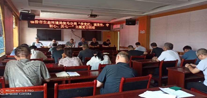 (本网讯 景继光)2024年是中国共产党成立103周年,是实现“十四五”规划目标任务的关键一年.为了回顾中国共产党百年奋斗的光辉历程,讴歌党的丰功伟绩,弘扬伟大建党精神,继承和发扬党的优良革命传统和作风,进一步增强各级党组织的凝聚力、战斗力和号召力,更好地发挥党员先锋模范作用。根据《中共侯马市委组织部关于开展庆祝中国共产党成立103周年系列活动的通知》(侯组通〔2024〕22号文件)的精神,2004年7月12日上午9︰00,临汾市生态环境局侯马分局在局二楼会议室开展“学党纪、强党性,守初心、庆七一”主题党日活动,正式党员、预备党员、入党积极分子参加。