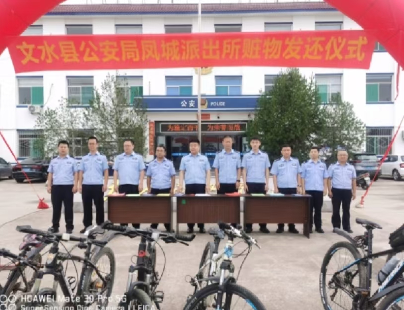 返赃仪式现场,凤城派出所民警将15辆被盗变速自行车悉数返还给受害群众。领到失而复得的自行车,群众的喜悦之情溢于言表,对公安机关重拳出击、及时挽损给予了高度评价,他们用一面面红彤彤的锦旗,表达了对公安机关破案挽损的衷心感谢。